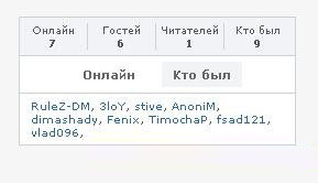 [c]  [/c]Улучшаем функцию Кто Онлайн для uCoz. Всем доброго дня, в этом посте мы будем создавать и улучшать внешний вид функции "Кто онлайн" для uCoz, плюс мы добавим путём js отдельный контейнер со списком зарегистрированных пользователей которые побывали на сайте в этот день.