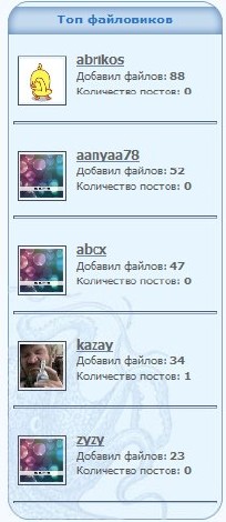 Главная » 2013 Февраль 23 » Как сделать топ пользователей,по количеству файлов,и постов